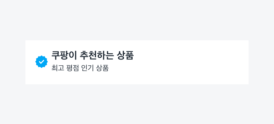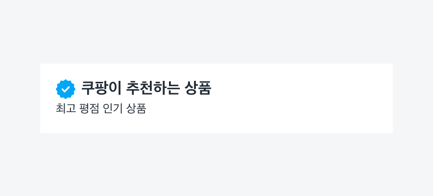 쿠팡 브랜드의 배지나 로고는 텍스트 앞 또는 뒤에 모두 배치할 수 있습니다. 단, 3줄 멀티라인 헤더에서는 로고나 배지를 텍스트와 함께 사용하지 않습니다.