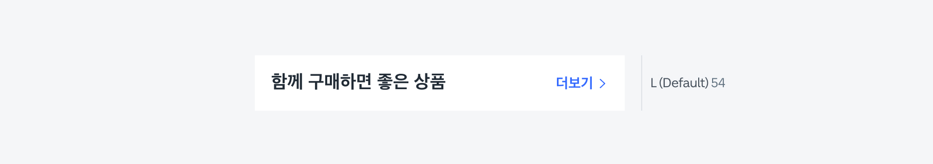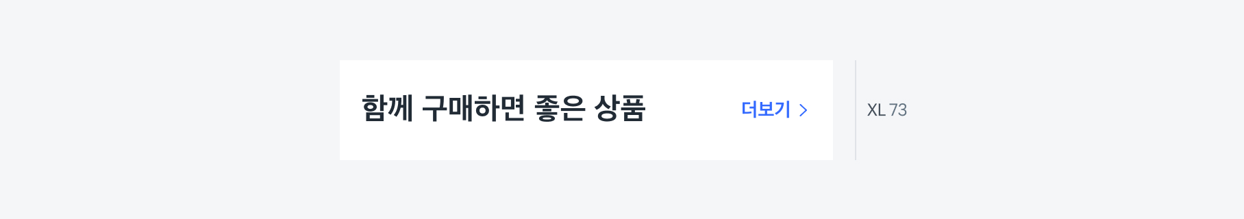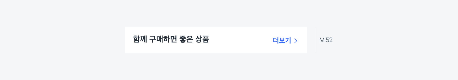 콘텐츠 영역과 관련한 행동을 유도할 때 사용합니다. 헤더 영역 우측 끝에 배치합니다. 주로 ‘더보기’ · ‘전체보기’ · ‘카테고리 설정’ 등의 버튼을 활용합니다.