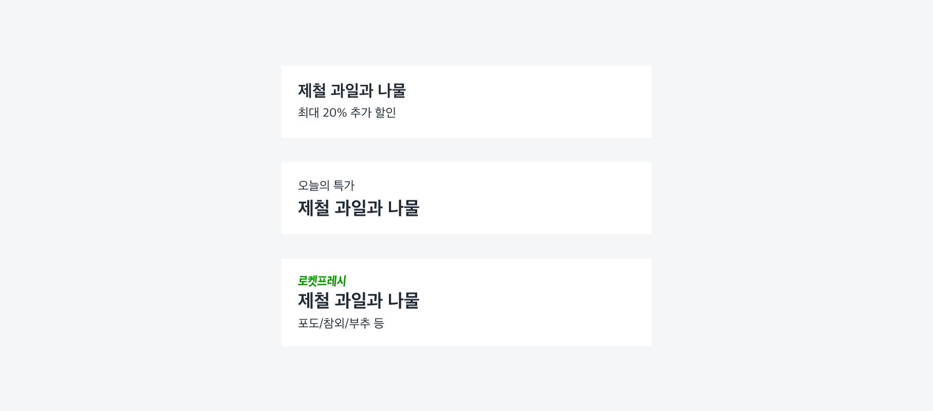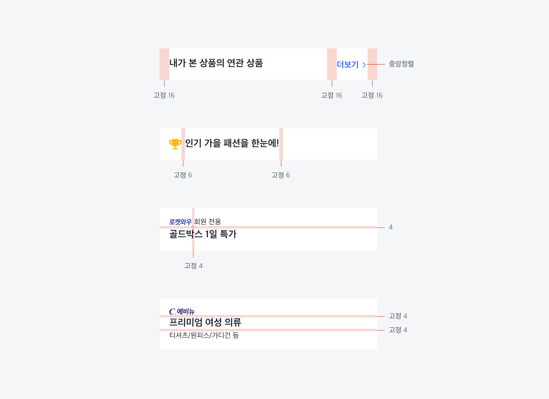 - 상단 보조 타이틀: 서비스, 브랜드, 콘텐츠 테마와 같이 타이틀보다 상위 개념의 정보를 전달할 때