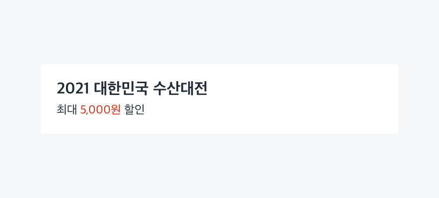 - 하단 보조 타이틀: 부가 설명, 구매 조건과 같이 타이틀보다 하위 개념의 정보를 전달할 때