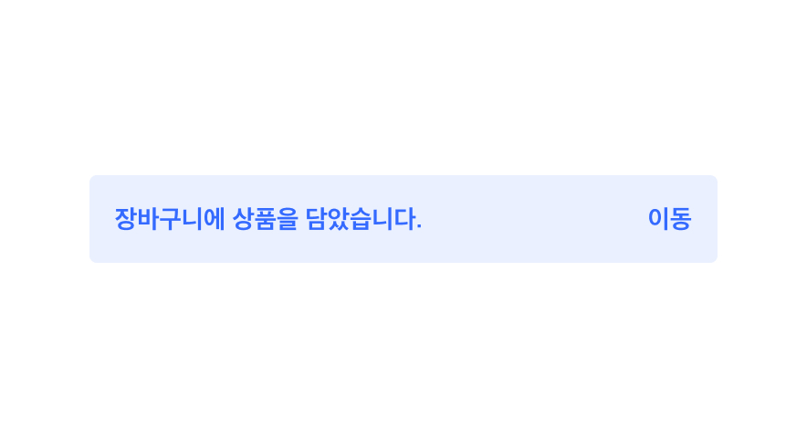 일반적인 행동에 관한 피드백을 알리는 상황입니다. 고객의 쇼핑을 방해하지 않도록 화면의 가장 윗부분에 스낵바를 배치합니다.