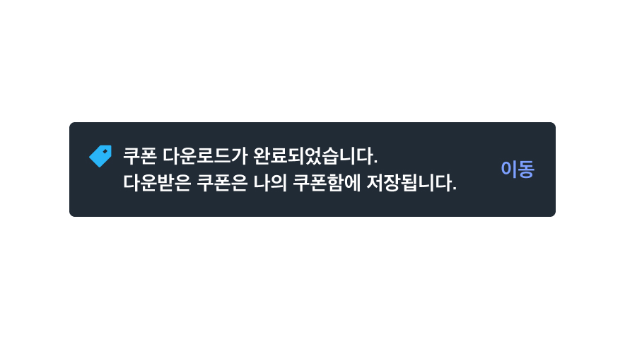 | Message Box | 서비스 홍보 및 정책, 주의사항, 오류 등 고객이 서비스 이용중에 알아야 할 내용을 전달할 때 사용합니다. | 일정 시간이 지나도 자동으로 사라지지 않습니다. |